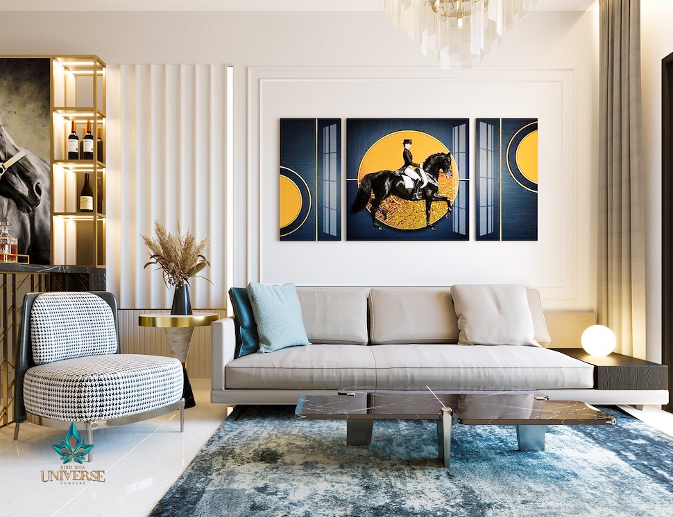 - Phòng khách nhà mẫu căn hộ 102,49m2 (3PN-2WC) dự án Bien Hoa Universe