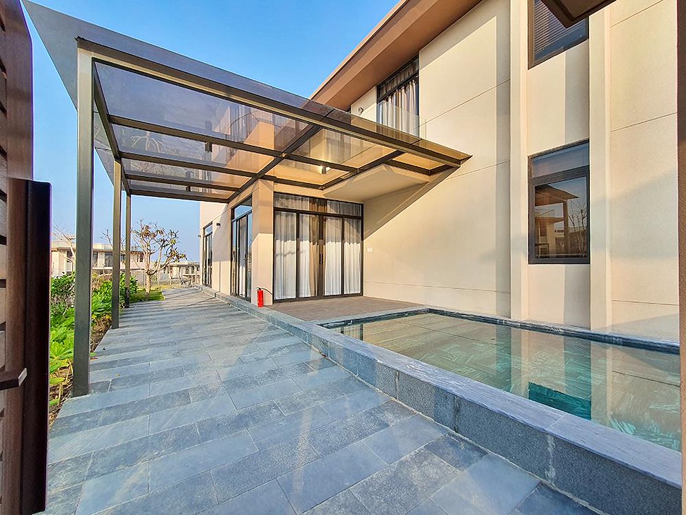 Nhà mẫu dự án dự án CAMRANH MYSTERY VILLAS được thiết kế với tiêu chuẩn tận dụng tầm nhìn tối đa, thông thoáng với khung cảnh xung quanh của hồ bơi, cây xanh, tạo cảm giác thư thái cho cả du khách nghĩ dưỡng.