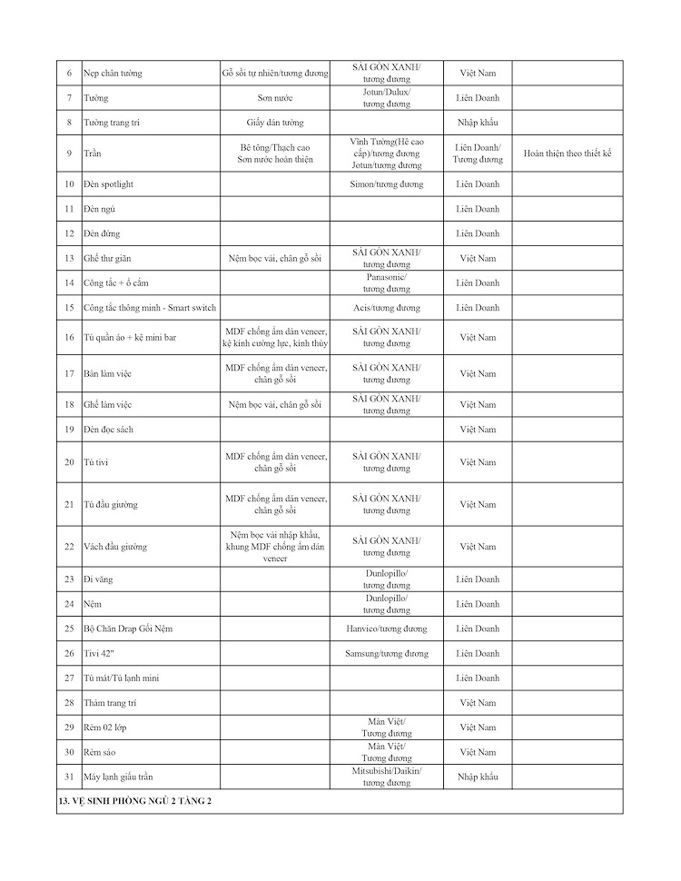 Vật liệu bàn giao: cửa kính xingfa, MALLOCA, full toàn bộ nội thất.