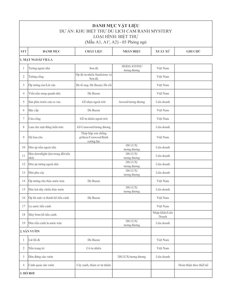 Tên thương mại: CAMRANH MYSTERY VILLAS